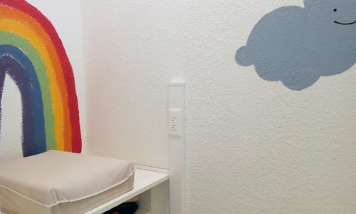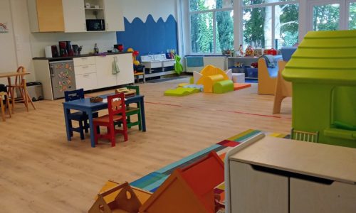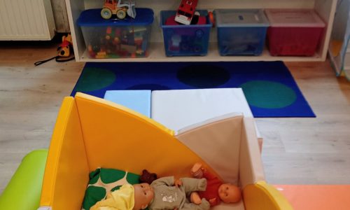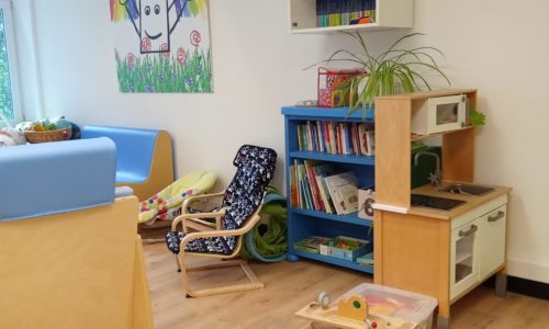 À l’intérieur, le grand local a été conçu et aménagé spécifiquement pour favoriser les déambulations et les découvertes des tout-petits. Il offre divers espaces pour le confort de tous : un espace dédié aux bébés, une table pour les goûters, un coin à langer pratique, des fauteuils confortables pour les adultes…